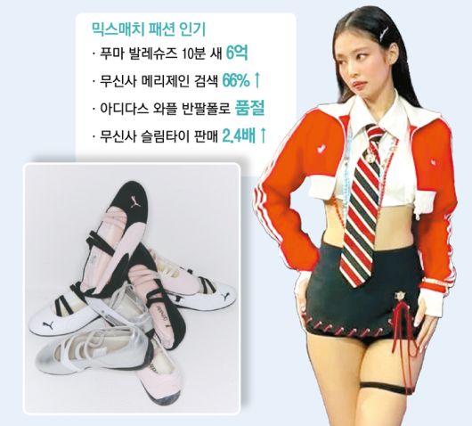 발레리나 슈즈를 닮은 운동화, 청바지와 넥타이의 조합 등 ‘믹스매치’ 트렌드가 젊은 층 사이에 대세로 떠올랐다. 이 같은 트렌드는 국내 대표 패션 플랫폼 무신사의 손을 거치면서 더욱 빠르게 퍼지는 모양새다.