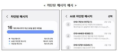 스팸 문자 차단 예시 |