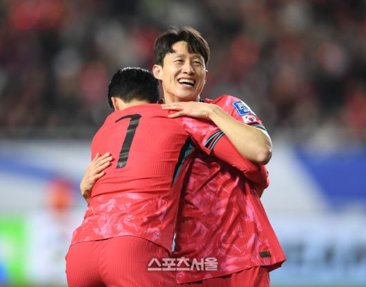 이재성이 25일 수원월드컵경기장에서 열린 2026 FIFA 북중미 월드컵 3차 예선 요르단과 경기에서 골을 넣은 후 환호하고 있다.2025. 3. 25.수원 | 최승섭기자 thunder@sportsseoul.com [기사제보 news@sportsseoul.com] Copyright ⓒ 스포츠서울&sportsseoul.com