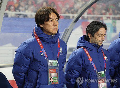 홍명보 감독이 그라운드를 바라보고 있다. 2025.3.25