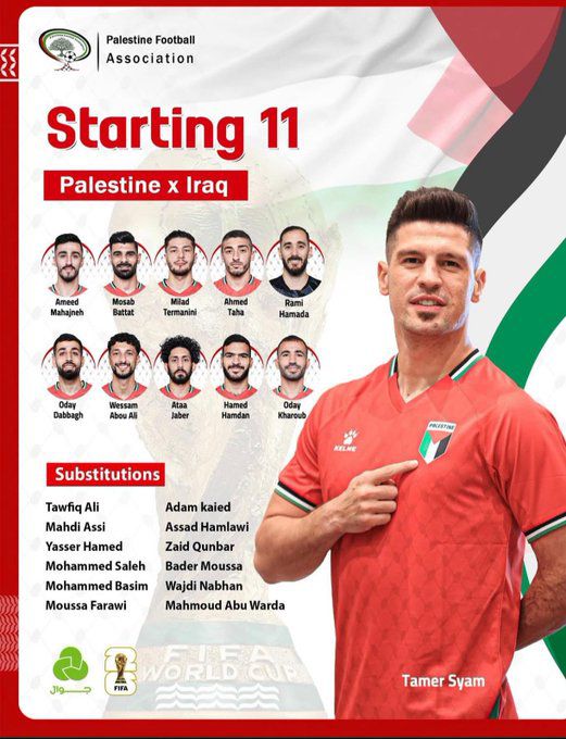 이라크는 26일(한국시간) 요르단 암만에 위치한 암만 국제경기장에서 열린 팔레스타인과의 2026 국제축구연맹(FIFA) 북중미 월드컵 아시아 지역 3차예선 B조 8차전서 1-2로 역전패 했다.