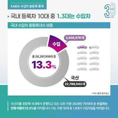 정윤영 KAIDA 부회장은 “지난 30년 간 수입자동차는 새로운 브랜드와 모델이 국내에 등장하면서 소비자의 선택 폭을 넓히고 다변화하면서 자동차 시장의 발전에 기여하고 있다”며 “한국수입자동차협회는 앞으로도 수입차 관련 다양한 통계와 분석자료, 각종 리서치와 조사 결과를 제공함으로써 자동차 산업의 근간이 되는 정보 제공자로서의 역할을 충실히 해 나가겠다”고 말했다.