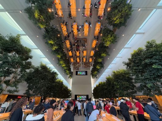 지난 1월 4일(현지시간) 미국 캘리포니아주 로스앤젤레스의 그로브 쇼핑센터에 있는 애플 스토어에서 사람들이 거울에 비친 천장에 비치고 있다. AFP연합뉴스 |