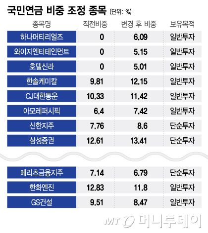 국민연금 비중 조정 종목/그래픽=이지혜 |