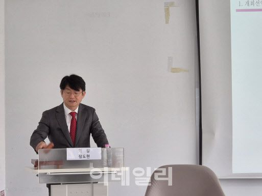 정도현 라파스 대표이사가 26일 오전 서울 강서구 라파스 사옥에서 열린 제19기 정기주주총회에서 개회를 선언하며 의사봉을 두드리고 있다. (사진=이데일리 나은경 기자) |