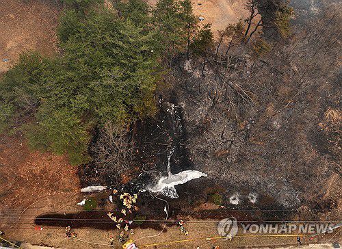(의성=연합뉴스) 손형주 기자 = 26일 오후 경북 의성군 신평면 교안리 야산에 산불진화용 헬기가 추락해 당국이 사고 수습을 하고 있다. 헬기 조종사는 사고 현장에서 사망 한 채 발견됐다. 2025.3.26