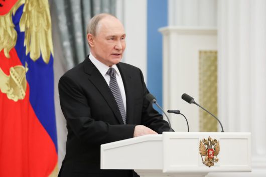 블라디미르 푸틴 러시아 대통령이 25일(현지시간) 러시아 모스크바 크렘린궁에서 열린 2024 러시아 문화와 문학, 예술 대통령상 시상식에서 말하고 있다.타스연합뉴스 |