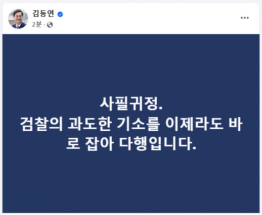 김동연 경기도지사가 26일 이재명 더불어민주당 대표의 항소심 무죄 판결에 대해 "사필귀정, 검찰의 과도한 기소를 이제라도 바로 잡아 다행"이라고 밝혔다.