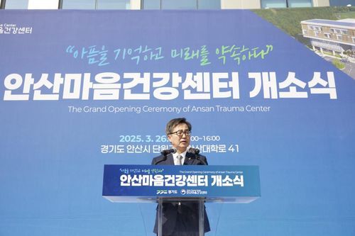 (안산=연합뉴스) 최해민 기자 = 경기도는 26일 세월호 참사 유가족 대표와 김동연 경기도지사, 이민근 안산시장 등 150여명이 참석한 가운데 안산마음건강센터 개소식 행사를 열었다.