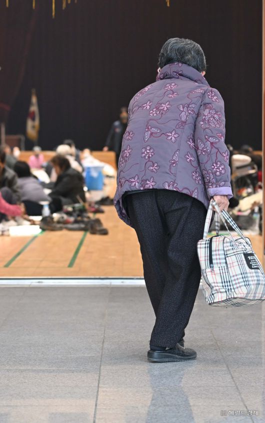 [헤럴드경제(영덕)=이상섭 기자] 경북 의성에서 발생한 산불이 5일째 이어진 가운데 26일 오후 영덕군 영덕읍 영덕국민체육센터로 한 주민이 들어가고 있다.