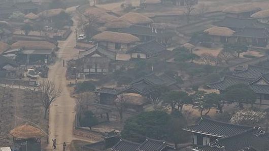 ▲ 회색 연기와 연무로 가득한 경북 안동시 하회마을