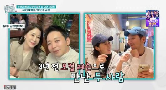 썸을 타던 당시를 떠올리며 김하영은 "사귀기 전에 코로나19에 걸렸는데, 우리 집 앞에 남자친구가 죽 놓고 가고 이런 게 마음이 콩닥거리다. 녹화 후 10일 만에 사귀게 됐다"고 밝혀 스튜디오를 설렘으로 물들였다.