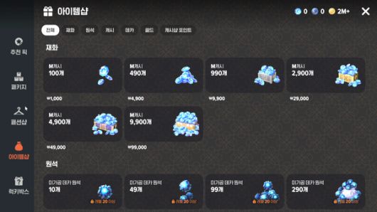 패션과 펫 뽑기권은 각각 200M캐시, 300M캐시에 판매된다. M캐시 9900개에 9만 9000원이다. 최고 등급인 유니크 픽업 상품의 확정 천장으로 패션은 100회, 펫은 200회다. 최악을 상정해 천장을 본다면 상당한 금액을 지불해야 한다.