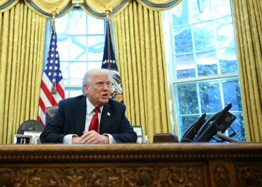도널드 트럼프 미국 대통령이 26일(현지시간) 미국 백악관에서 수입산 자동차에 25% 관세를 서명한 후 기자들과 질의응답을 하고 있다. (사진=AFP) |