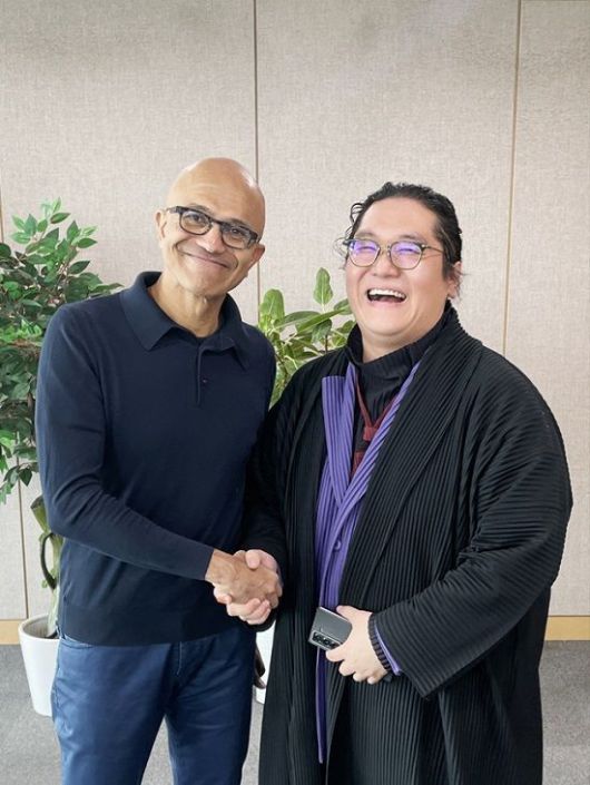 마이크로소프트(MS)의 사티아 나델라 CEO가 '마이크로소프트(MS) AI 서밋' 개최에 앞서, 인공지능 엔터테크 선도 기업인 갤럭시코퍼레이션의 최용호 대표와 비공개 간담회를 갖고 혁신적인 콘텐츠에 대한 극찬을 아끼지 않았다.