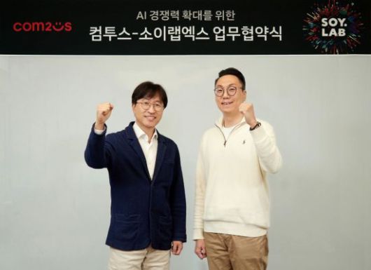 컴투스-소이랩엑스 업무협약식(좌측 컴투스 남재관 대표, 우측 소이랩엑스 최돈현 대표) |