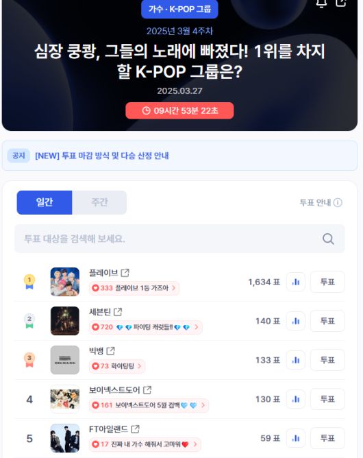 한편, 대성이 속한 그룹 빅뱅은 2025년 3월 27일 오후 2시 5분 기준 디시트렌드(dctrend) '심장 쿵쾅, 그들의 노래에 빠졌다! 1위를 차지할 K-POP 그룹은?' 일간 투표에서 3위를 기록하며 133표를 획득했다. 여전히 강력한 팬덤과 인기를 과시하며 K팝 대표 아이콘다운 존재감을 과시하고 있다.