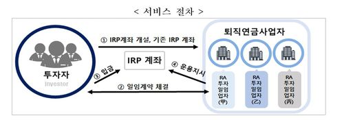 기존에는 IRP가입자가 적립금 운용을 직접 지시해야 했지만, 이 서비스를 이용하면 투자일임업자의 로보어드바이저가 가입자를 대신해 운용을 지시하게 된다.