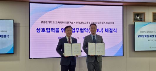 아시아투데이 지환혁 기자 = 한국대학교육협의회 대학라이즈지원센터는 지역혁신중심 대학지원체계(RISE)의 안정적인 정착을 위해 성균관대학교 교육과미래연구소와 손을 잡았다.