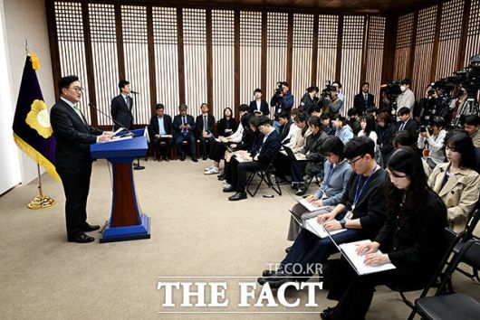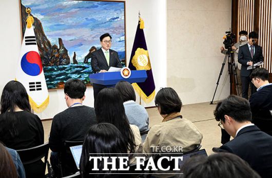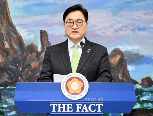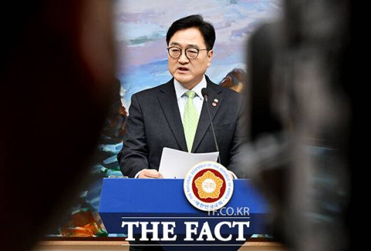[더팩트ㅣ국회=배정한 기자] 우원식 국회의장이 27일 오후 서울 여의도 국회에서 대국민 담화문을 발표하고 있다.