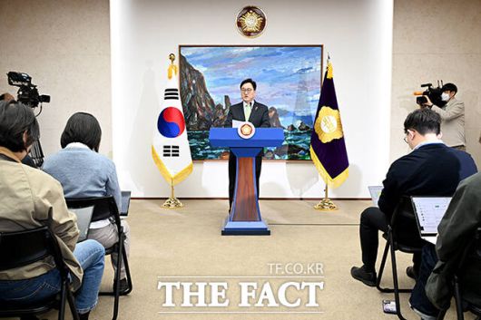 우 의장은 이날 담화문을 통해 "선고가 지연될수록 우리 사회가 감당할 혼란이 커질 것이다. 그 대가는 고스란히 국민이 치르게 된다"며 "헌법재판관들께서는 최대한 신속하게 윤석열 대통령 탄핵 심판 선고를 내려달라"고 밝혔다.