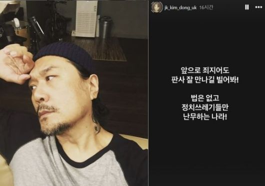 27일 가요계에 따르면 JK김동욱은 전날 자신의 인스타그램 스토리에 올린 글에서 "앞으로 죄 지어도 판사 잘 만나길 빌어봐!"라며 "법은 없고 정치쓰레기들만 난무하는 나라"라고 일갈했다.