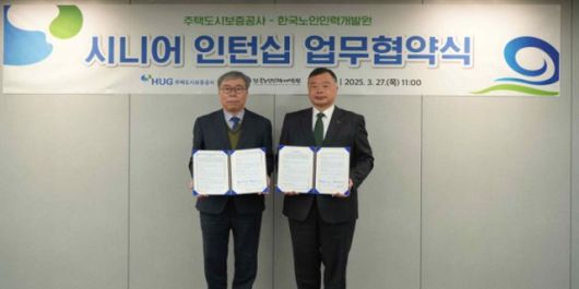 주택도시보증공사(HUG)는 한국노인인력개발원과 시니어 인턴십 업무협약을 체결했다고 27일 밝혔다.