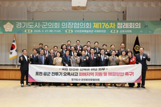 아시아투데이 진현탁 기자 = 경기 포천시의회는 임종훈 의장이 27일 군포문화예술회관에서 열린 경기도 시·군의회의장협의회 제176차 정례회의에 참석해 '포천 공군전투기 오폭사고 피해지역 지원 및 해결방안 촉구 결의안'을 제안했다고 밝혔다.