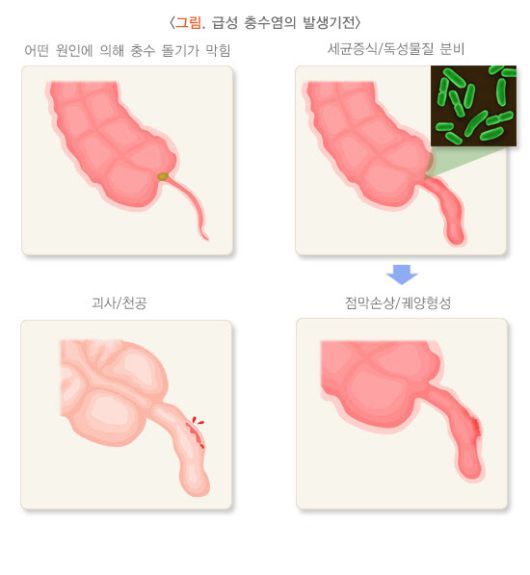 급성 충수염 발생기전(자료=질병관리청 국가건강정보포털) |