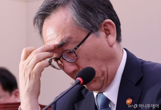 조태열 외교부 장관이 지난 24일 오후 서울 여의도 국회에서 미국 에너지부가 한국을 민감국가로 지정한 문제와 관련 긴급 현안보고 및 질의를 위해 열린 외교통일위원회 전체회의에서 잠시 생각에 잠겨 있다. / 사진=뉴시스 |