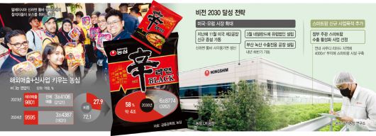 27일 업계에 따르면 농심의 올해 전략 방향키는 해외시장에 맞춰져 있다. 수출물량 증대와 현지 공장 증설로 매출을 늘리겠다는 전략이다.
