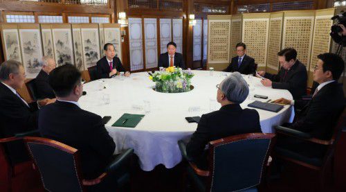 한덕수 대통령 권한대행 국무총리가 27일 오후 서울 종로구 총리공관에서 열린 경제 6단체장 간담회에서 발언하고 있다. /국무총리실 |