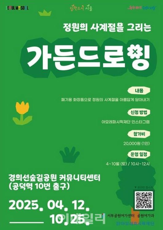 가든드로잉은 회차별로 각각 20명씩 참여할 수있으며 아모레퍼시픽재단 공식 인스타그램내 QR코드를 통해 30일까지 신청할수있다.