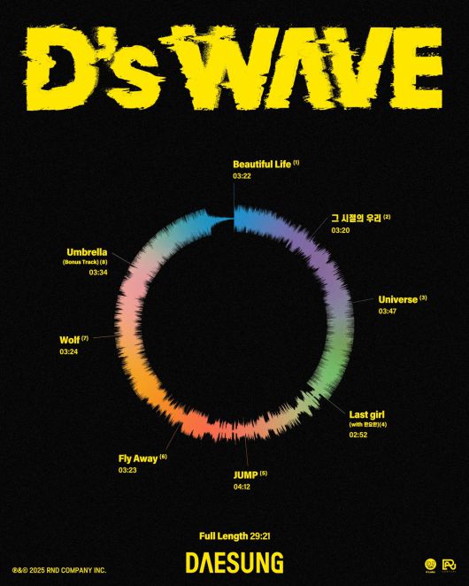 '알앤디컴퍼니(디레이블)'은 지난 27일 대성 공식 SNS에 첫 번째 미니 앨범 '디스 웨이브'(D's WAVE) 트랙리스트 이미지를 올렸다.