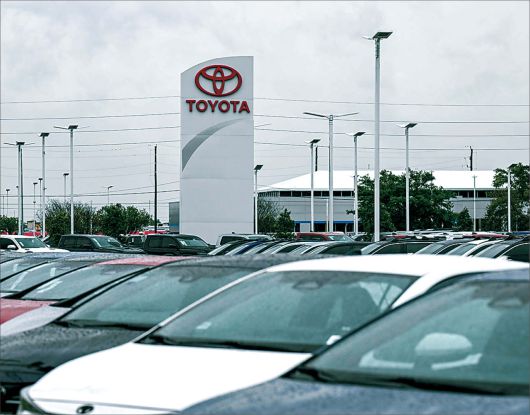 도널드 트럼프 미국 대통령이 26일(현지시간) 수입 자동차 및 부품에 대한 대규모 관세를 발표하면서 북미와 유럽의 주식 시장이 동반 하락했고, 자동차 제조업체들도 큰 타격을 입을 것으로 전망된다. 다수의 전문가들은 이러한 강경한 무역 정책이 경기 침체를 초래할 것을 우려하고 있다. 사진은 같은 날 미 텍사스주 휴스턴에 위치한 완성차 업체 토요타의 대리점, 현대자동차의 대리점과 캘리포니아주 어바인 소재 쉐보레 대리점의 전경 [AFP·로이터] |