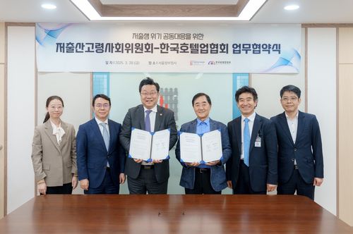 (서울=연합뉴스) 오진송 기자 = 저출산고령사회위원회(저출산위)는 28일 정부서울청사에서 한국호텔업협회와 저출생 위기 공동 대응을 위한 업무협약(MOU)을 체결했다고 밝혔다.