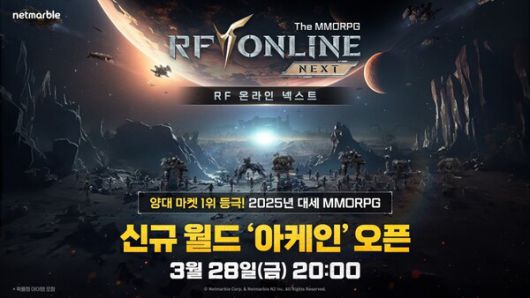 한편 'RF 온라인 넥스트'는 지난 2004년부터 20여 년간 서비스한 'RF 온라인' IP를 활용한 MMORPG 신작으로, 정식 출시 6일 만에 국내 양대 마켓 매출 1위를 기록하는 등 이목이 집중되고 있다.