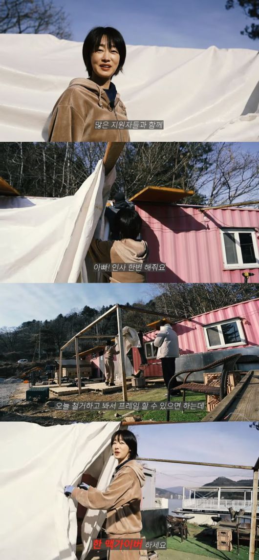 최여진은 새아버지와 함께 작업하며 "고마워, 아빠"라고 다정하게 인사를 건네며 진심 어린 감사를 전했다. 그는 "사랑하는 사람들이 미끄러지지 않고 갈 수 있는 길을 내가 깔 수 있다는 게 큰 행복"이라며 가족에 대한 뿌듯함을 전했다.