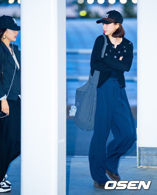 에스파 카리나와 닝닝이 출국장으로 이동하고 있다. 2025.03.28 / rumi@osen.co.kr