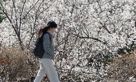 꽃샘추위가 기승을 부인 지난 17일 대구 경북대학교에서 목도리를 찬 학생이 이동하고 있다. 연합뉴스 |