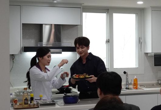 지난 27일 경동나비엔 평택 생산기지 에코허브에서 열린 '나비엔 매직' 공식 론칭 행사에서 김보영 경동원 영양사가 '나비엔 매직'의 전기레인지 인덕션, 3D 후드를 활용해 한방소갈비찜 요리 시연 행사를 진행 중이다. 경동나비엔 제공 |