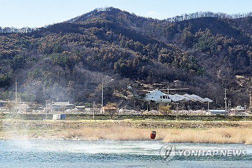 (영덕=연합뉴스) 손대성 기자 = 산불 진화 헬기가 30일 경북 영덕 오십천에서 남은 불 진화를 위한 물을 뜨고 있다. 2025.3.30 sds123@yna.co.kr ▶제보는 카카오톡 okjebo▶연합뉴스 앱 지금 바로 다운받기~▶네이버 연합뉴스 채널 구독하기 <저작권자(c) 연합뉴스, 무단 전재-재배포, AI 학습 및 활용 금지><저작권자(c)연합뉴스. 무단전재-재배포금지.>