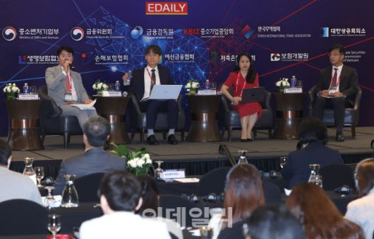 [이데일리 노진환 기자] 제14회 국제 비즈니스·금융 컨퍼런스가 28일 베트남 하노이 랜드마크72에서 열렸다. 조주현(왼쪽부터) 중소벤처기업연구원장을 좌장으로 김용균 서울대 아시아연구소 베트남 센터장, 부 타잉 흐엉 베트남하노이국립대 경영대학 부학부장, 황민서 김앤장 법률사무소 변호사가 ‘글로벌 공급망 리스크 대응과 미래산업 분야에서의 협력 방안’을 주제로 토론하고 있다. |