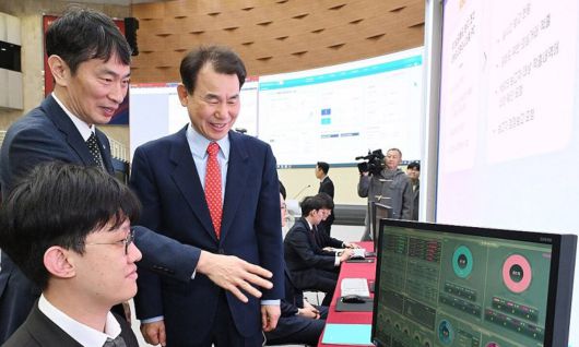 이복현 금융감독원장과 정은보 한국거래소 이사장이 19일 서울 여의도 한국거래소에서 열린 '공매도 전산시스템 구축 시연회'에서 공매도 중앙점검시스템(NSDS) 불법 공매도 적출 시연을 보고 있다. 공동취재 |