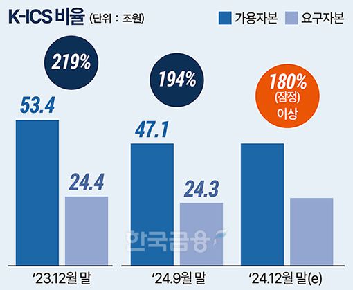 작년 12월 말 기준 K-ICS 비율은 미정이지만 작년 말 대비 자기자본은 11조6000억원 감소했다.