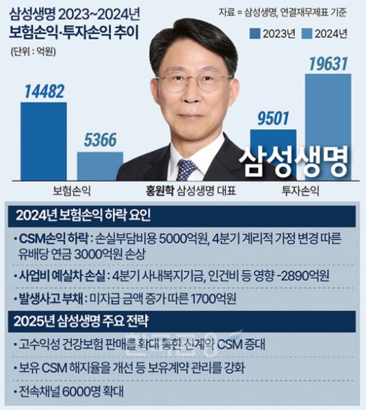 삼성생명은 컨퍼런스콜에서 "계리적 가정 변경으로 연금 지급액이 늘어나면서 유배당 연금상품 부문에서 3000억원 가량 손실이 발생했다"라며 "양질의 신계약 CSM확보 및 보유계약에 대한