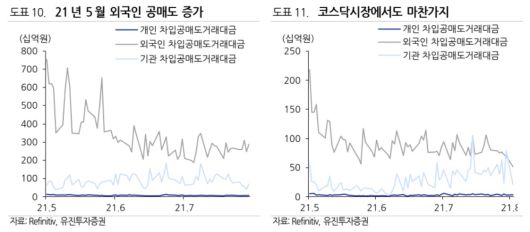 공매도 금지 해제로 외국인 투자가들의 참여는 더 활발해질 가능성이 높다. 허 연구원은 "2021년 5월만 보면, 공매도 금지 해제 이후 외국인 투자가들의 차입공매도가 기관과 개인 투자자들에 비해 크게 늘어났다"고 했다.