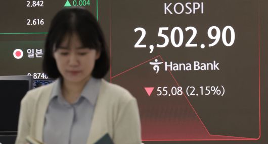 이날 오전 9시 50분 코스피 지수는 전장보다 62.33포인트(2.44%) 내린 2494.54다.