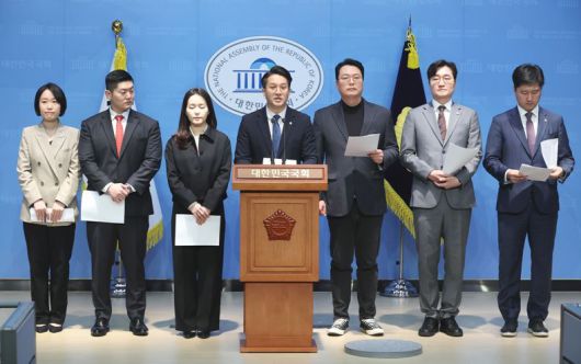 지난 23일, 서울 여의도 국회 소통관서 김재섭(국민의힘)·전용기(더불어민주당) 등 젊은 여야 의원들이 국민연금 개혁에 대한 기자회견을 갖고 있다. ⓒ뉴시스 |