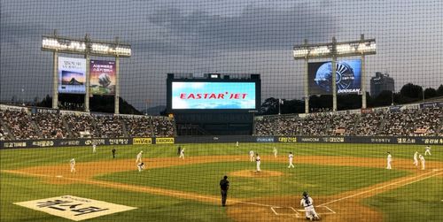 잠실야구장에서 펼쳐진 이스타항공 브랜드 홍보 |